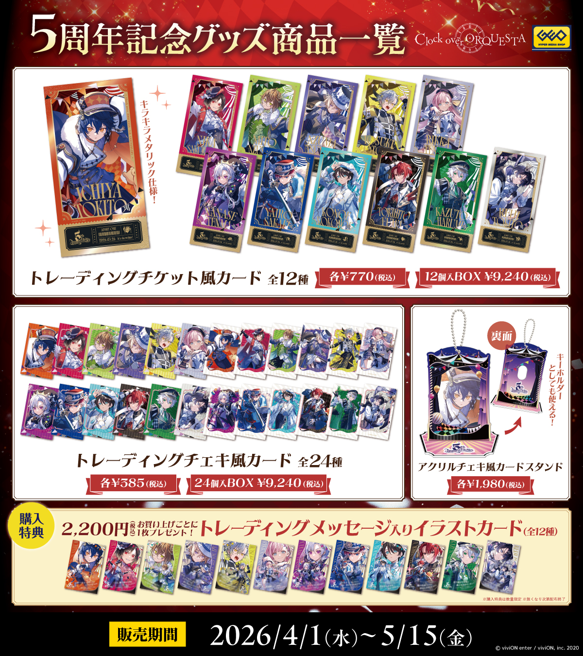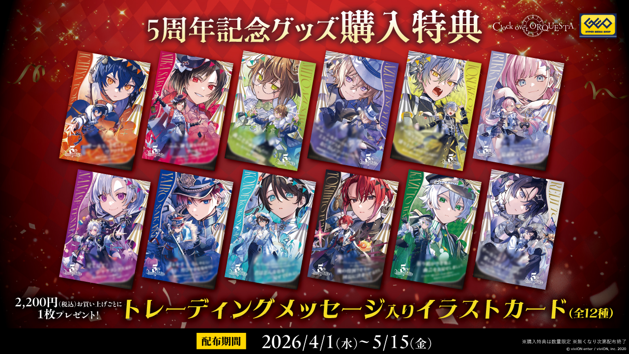 描き下ろしイラストを使用した新たなグッズを発売するとともに、対象グッズを2,200円(税込)お買い上げごとに購入特典として、主人公たちの特別なメッセージの入ったイラストカードをご用意しました。